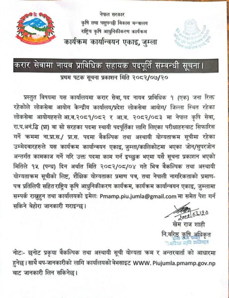 कर्मचारी आवश्यकता सम्बन्धी सूचना