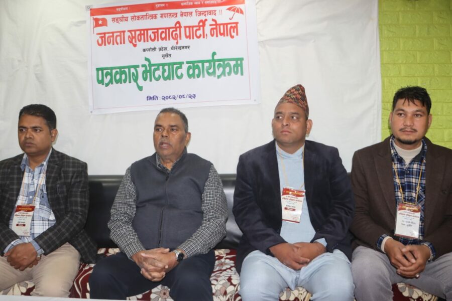 जसपा नेपाल कर्णाली प्रदेशद्वारा आज सुर्खेतमा आयोजित पत्रकार भेटघाट कार्यक्रममा बोल्दै अन्यौलताको बीचबाट मुलुक गुज्रिरहेको र यही अवस्था रहे ठूलो संकटको सामना गर्नुपर्ने अवस्था सिर्जना हुने बताउनुभयो । “अहिले देशको लोकतन्त्र र अर्थतन्त्र धरापमा छ । जेनजीहरुका एजेण्डाहरुले स्थान पाएका छैनन्,” उहाँले भन्नुभयो, “यसरी देखापरेको राष्ट्रिय समस्या हल गर्न चुनावी जनादेश प्राप्त गरेको वर्तमान सरकारले फागुन २१ गते चुनाव गर्नैपर्छ ।”