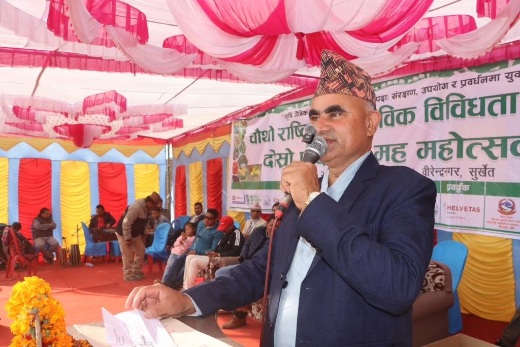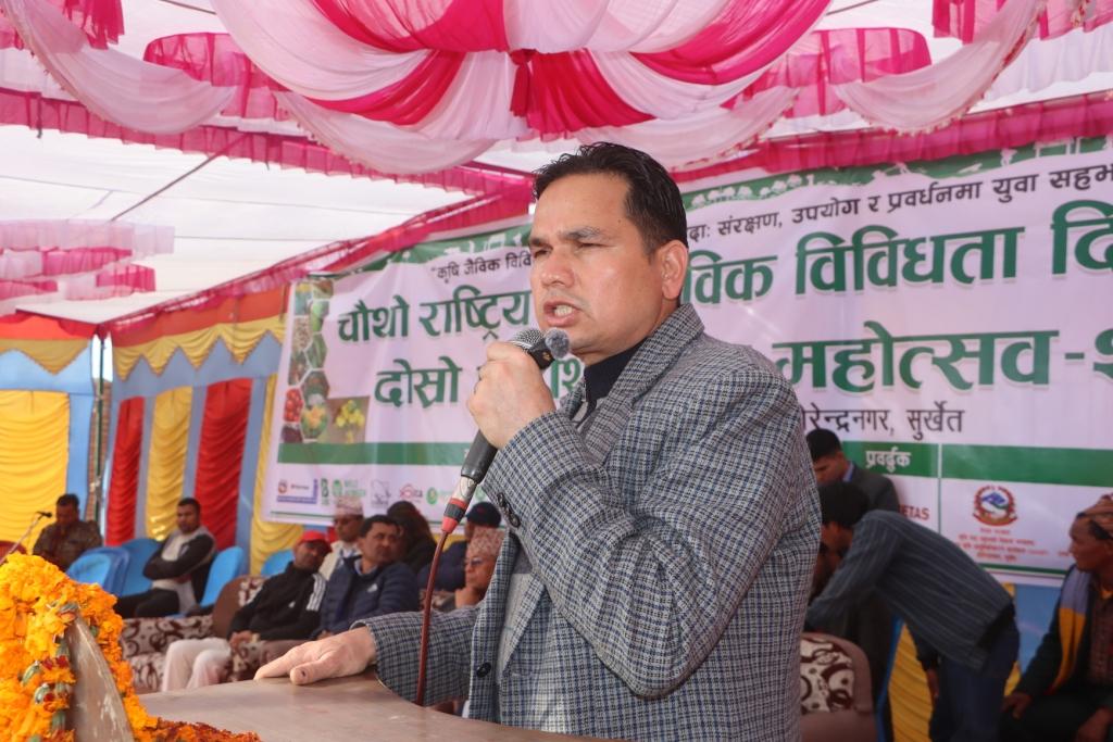 चौथो राष्ट्रिय कृषि जैविक विविधता दिवस–२०८२ को अवसरमा भूमि व्यवस्था, कृषि तथा सहकारी मन्त्रालय कर्णाली प्रदेश, कृषि विकास निर्देशनालय सुर्खेत, वीरेन्द्रनगर नगरपालिका र राष्ट्रिय तथा अन्तर्राष्ट्रिय विकास साझेदार संस्था लिबर्डसहितका दर्जन बढी संस्थाहरुको समन्वयमा नेपाल मौरीपालक महासंघ कर्णाली प्रदेश सुर्खेतद्वारा वीरेन्द्रनगरमा आयोजित ‘दोस्रो प्रादेशिक मह महोत्सव’ले व्यवसायी एवं किसानहरुलाई आ आफ्नो उद्यम, व्यवसाय तथा कर्ममा लाग्न उत्साहित गरेको कृषि विकास निर्देशनालय सुर्खेतका निर्देशक चित्रबहादुरर रोकाले बताउनुभयो ।
