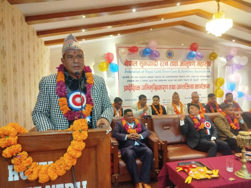कर्णाली सुनचाँदी रत्न तथा आभूषण महासंघको समन्वयमा नेपाल सुनचाँदी रत्न तथा आभूषण महासंघद्वारा आज सुर्खेत वीरेन्द्रनगरमा आयोजित प्रादेशिक अभिमुखीकरण तथा अन्तरक्रिया कार्यक्रममा बोल्दै व्यवसायीहरुको देखिएको समस्या समाधानमा प्रदेश सरकारले आवश्यक पहल गर्ने बताउनुभयो ।
