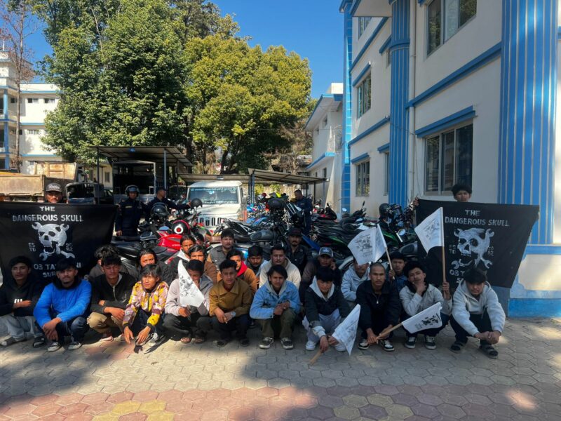स्थानीय प्रशासनको अनुमति बिना मोटरसाइकल ¥याली निकालेर सार्वजनिक शान्ति तथा निर्वाचन सुरक्षामा खलल पु¥याएको आरोपमा ‘खतरनाक खोपडी’ (ड्यान्जर स्कुल) नामक युवा समूहका २५ जनालाई आज प्रहरीले पक्राउ गरेको हो ।